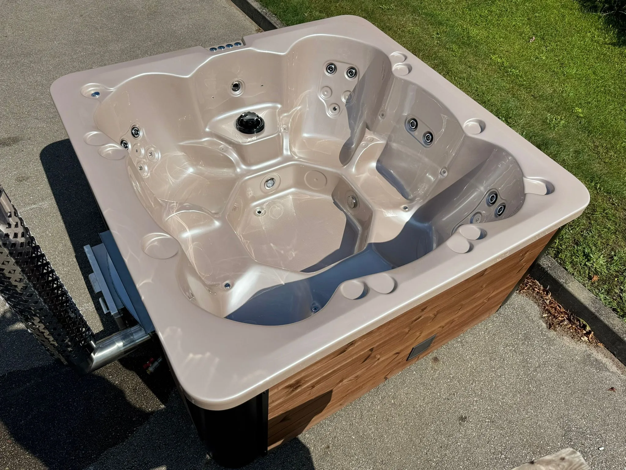 L’acrylique sanitaire est le matériau standard des spas et jacuzzis haut de gamme depuis des décennies — c’est un choix éprouvé, pas une nouveauté. Il résiste aux UV, au brome, au chlore et aux variations de température sans se décolorer ni se dégrader. La surface est lisse et non poreuse : elle ne retient pas le calcaire, ne jaunit pas et se nettoie à l’eau claire avec un produit doux. À éviter : les éponges abrasives et les produits ménagers concentrés, qui peuvent ternir le brillant en surface. Avec un entretien normal, une cuve acrylique tient facilement 15 à 20 ans.