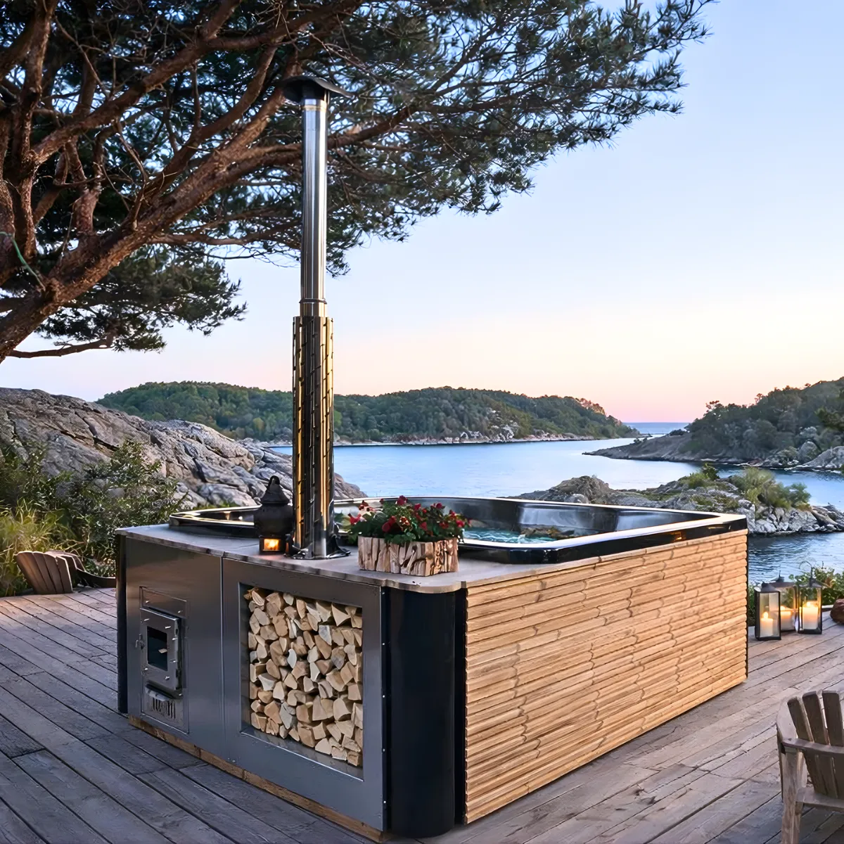 - Poêle à bois intégré en inox AISI 316, résistance maximale à la corrosion