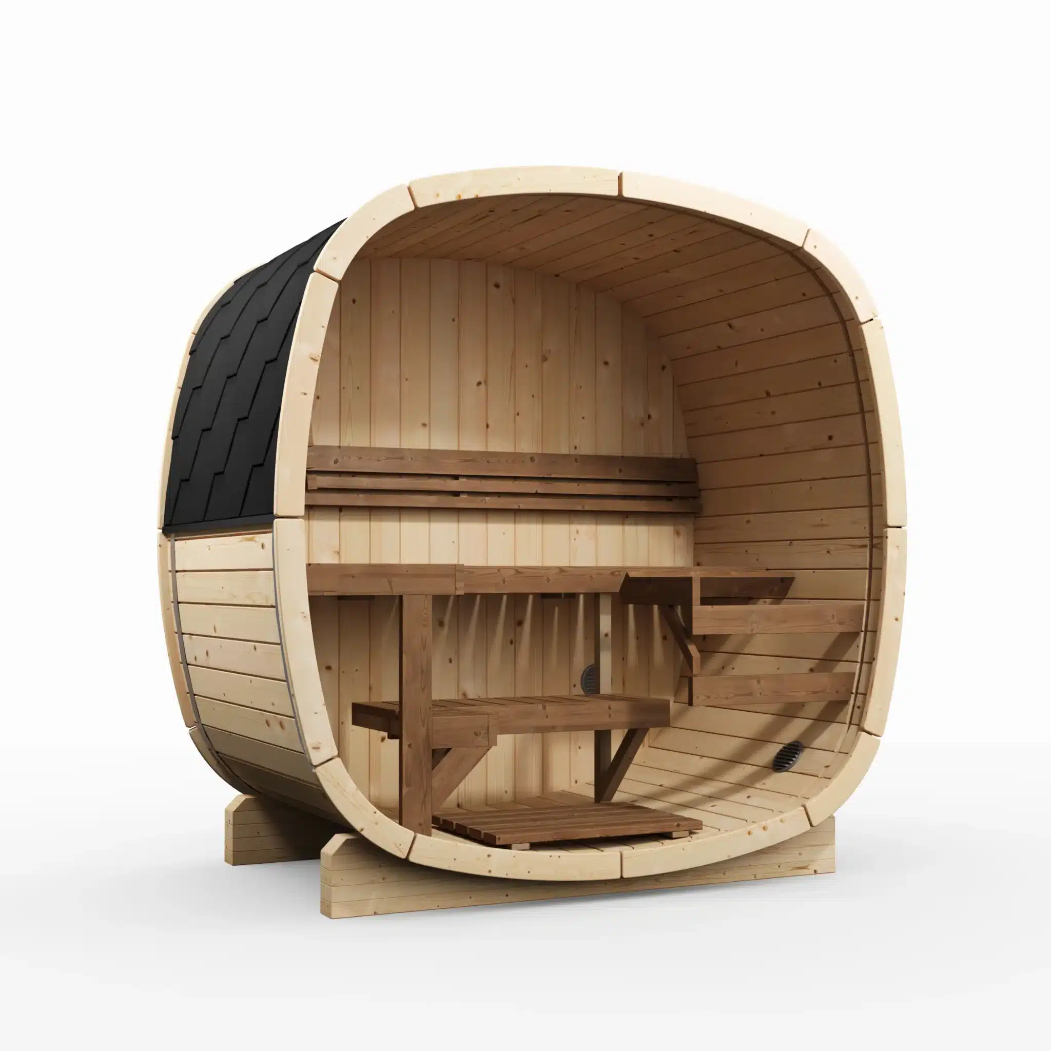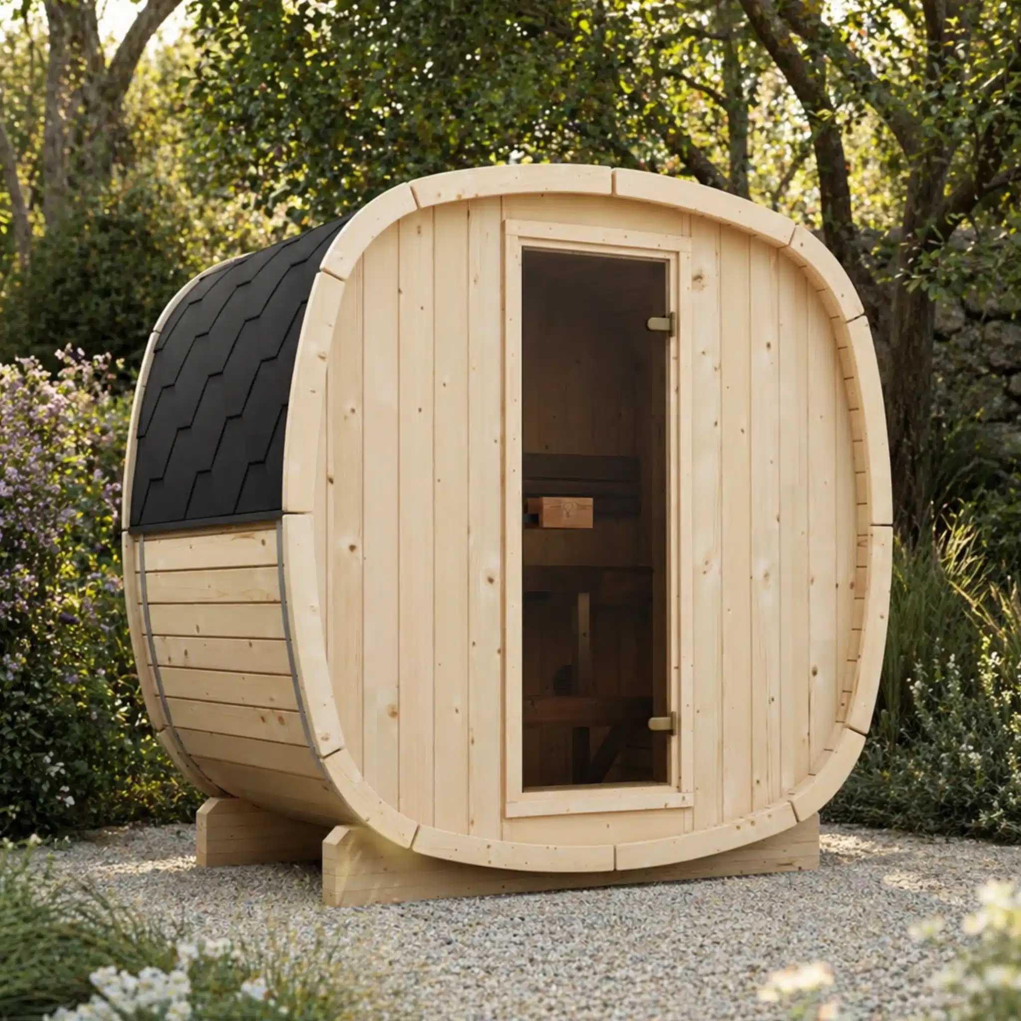 Le Njord Bjorn 130 Épicéa Nordique est le modèle compact de la gamme baril, conçu pour un usage à deux personnes. Ses 210 x 210 x 130 cm d’emprise au sol en font le sauna extérieur idéal pour un coin de jardin, une terrasse, une cour urbaine ou tout espace extérieur où un modèle plus grand ne trouverait pas sa place.
