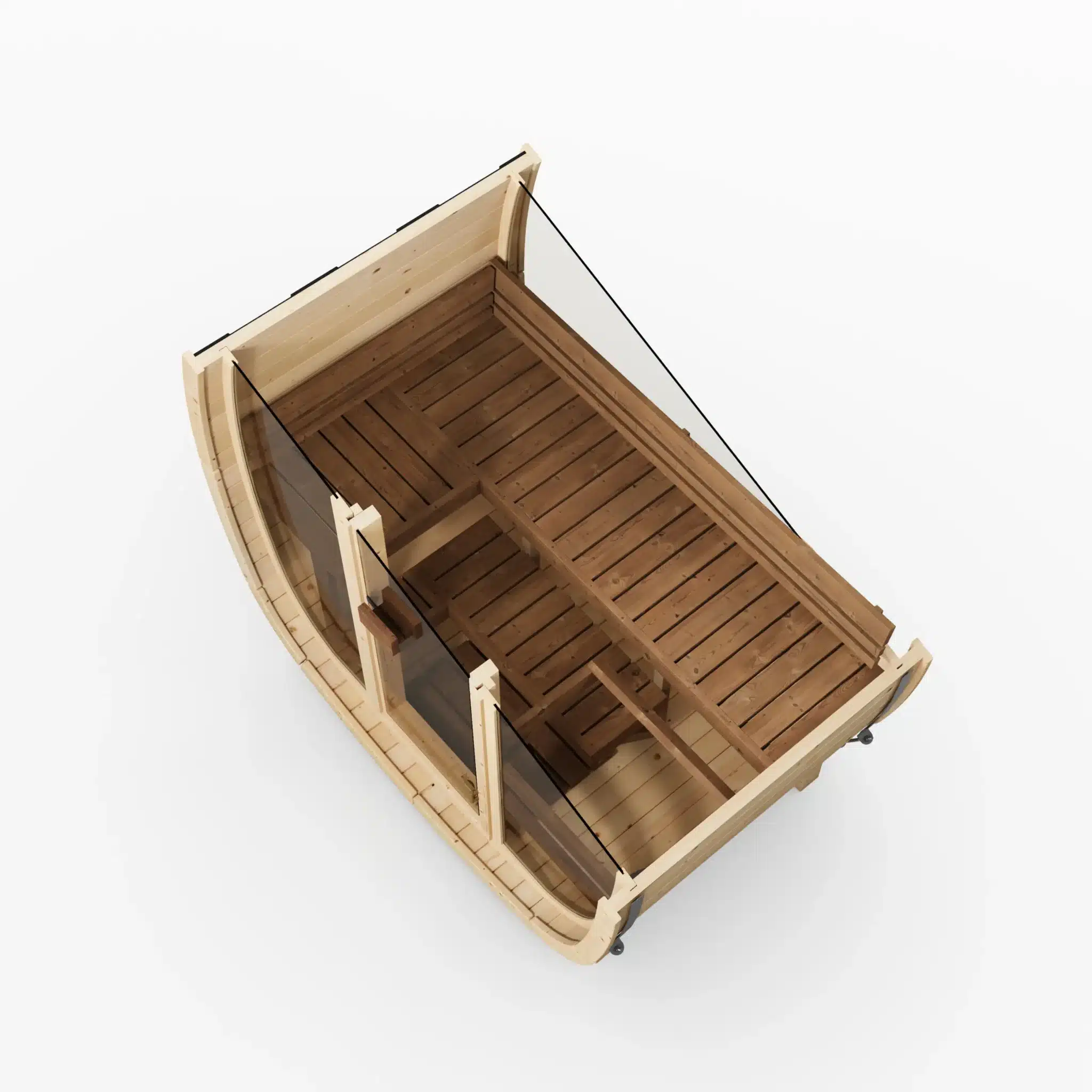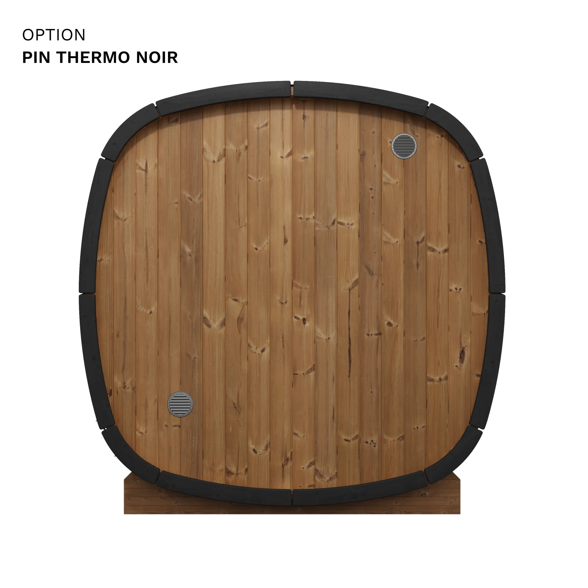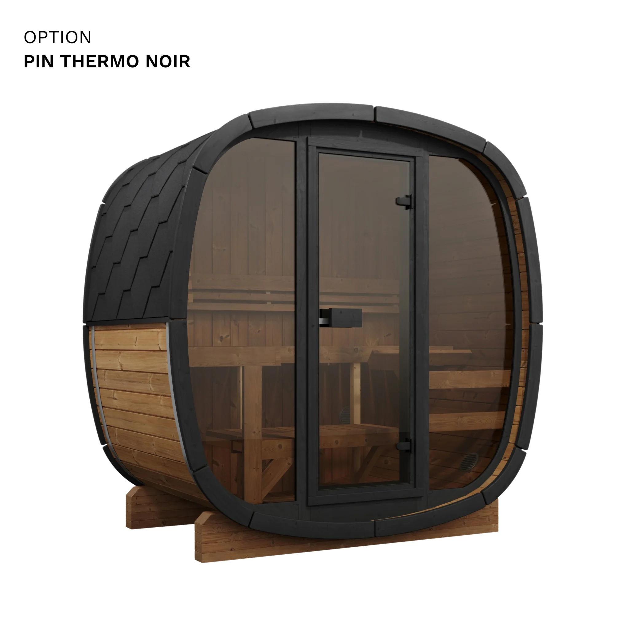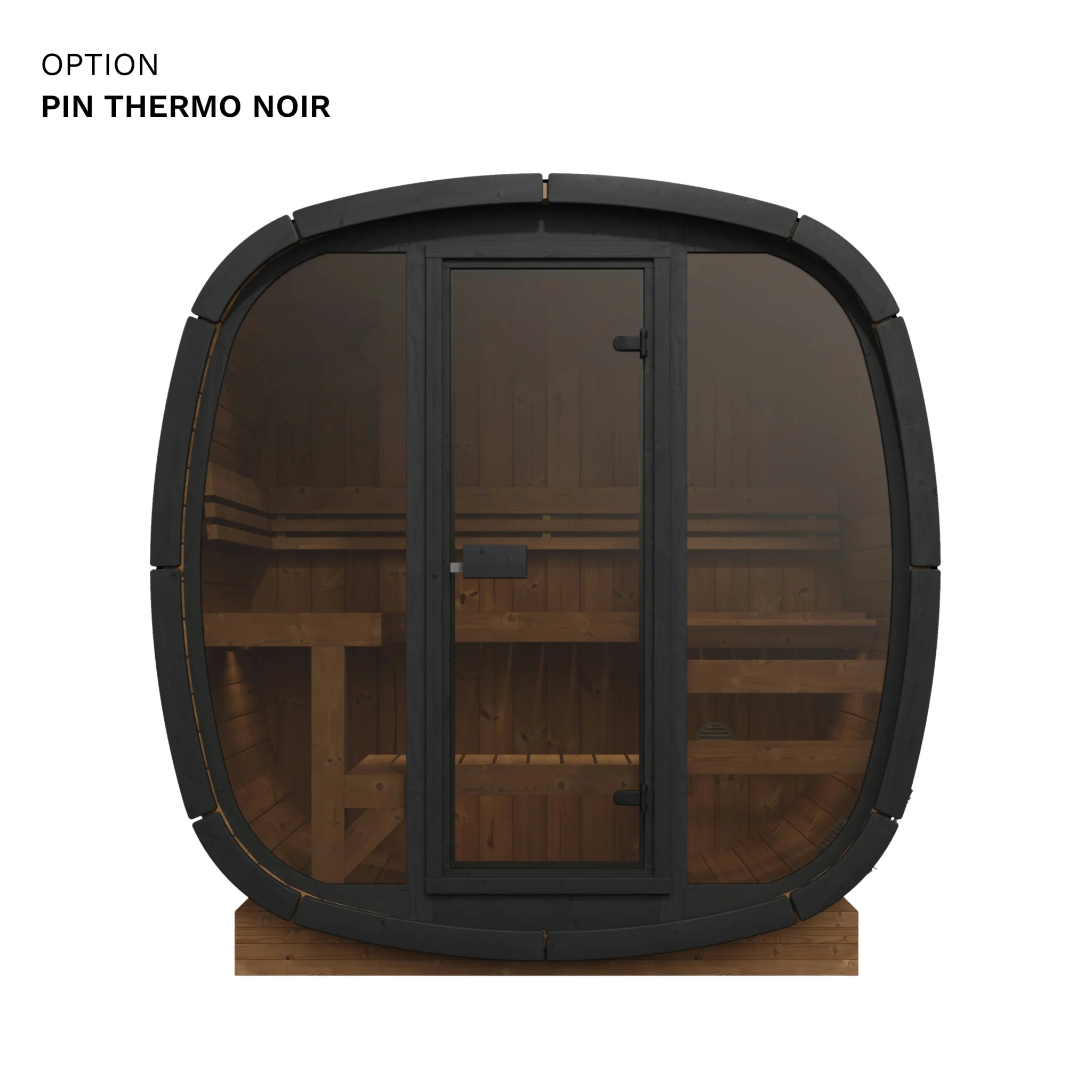 Oui, les deux options sont cumulables. La façade vitrée remplace la porte et les panneaux frontaux par une paroi en verre pleine hauteur, ce qui apporte de la luminosité et un aspect visuel soigné. La vitre arrière en demi-lune est un ajout complémentaire sur la paroi opposée. En combinant les deux, vous maximisez la lumière naturelle à l’intérieur et créez une transparence visuelle traversante intéressante si votre sauna est positionné dans un environnement paysager.