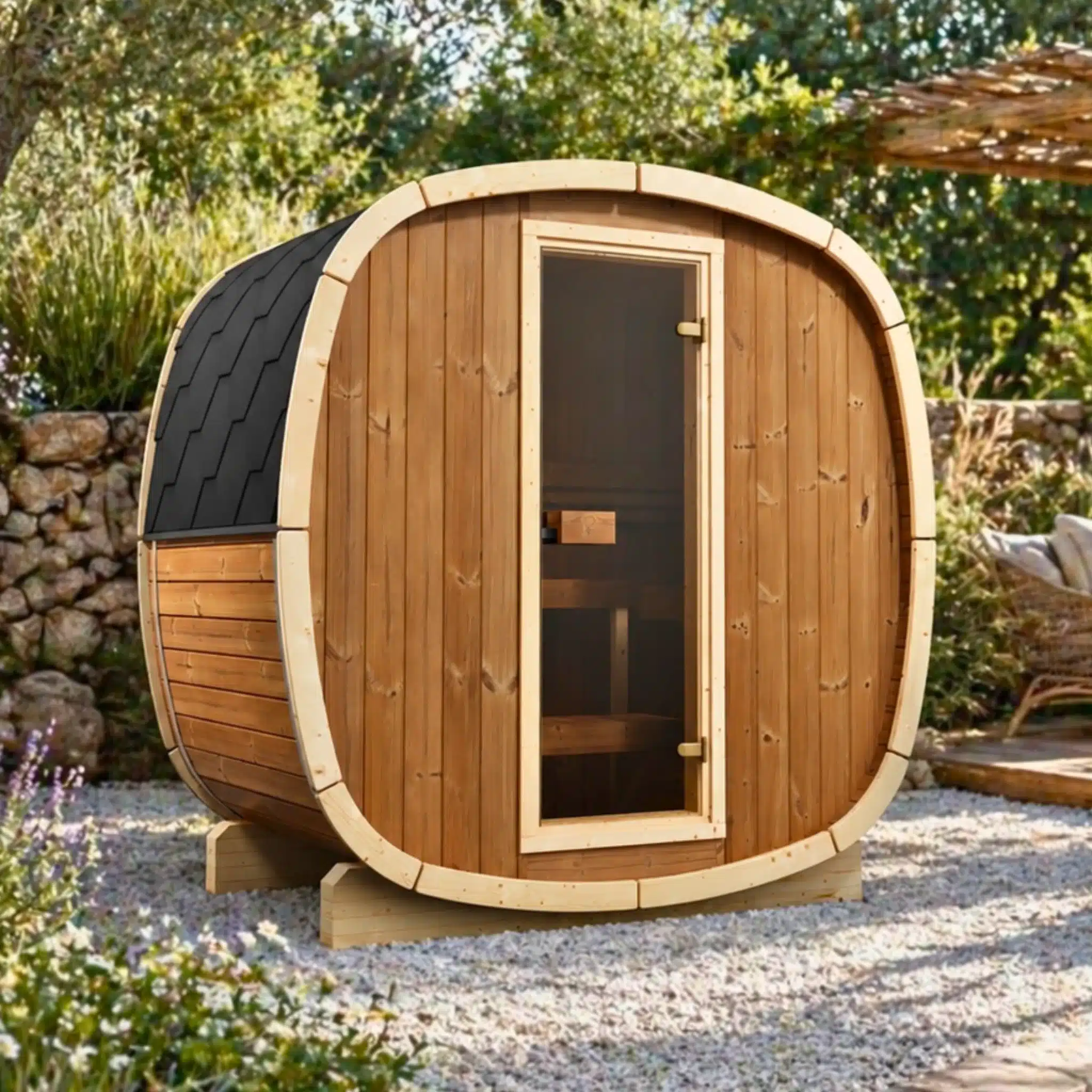 Ce modèle combine design scandinave et durabilité sans entretien, avec un poêle électrique au choix. Parfait pour les petits jardins et les terrasses, il incarne la tradition nordique dans un format moderne et robuste.