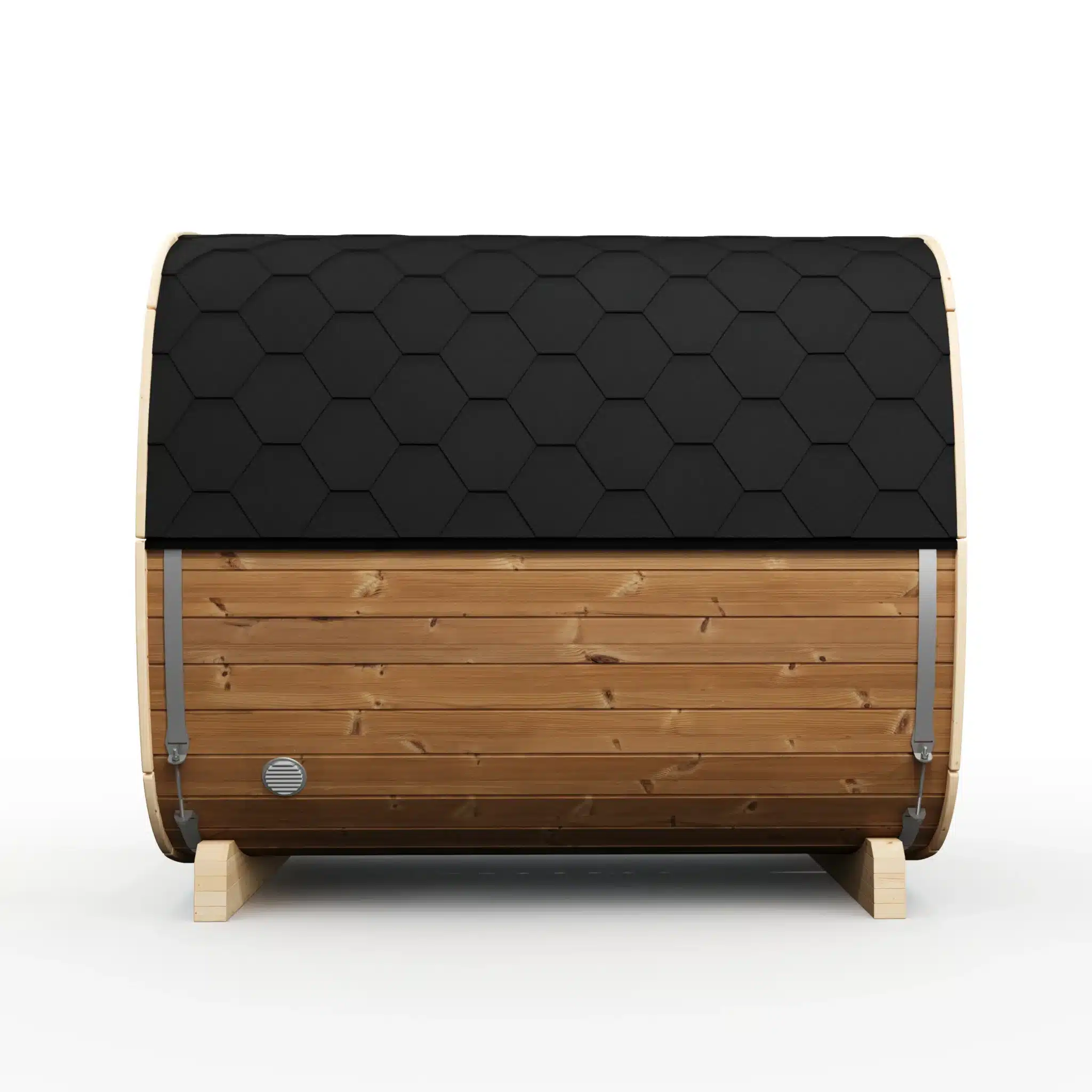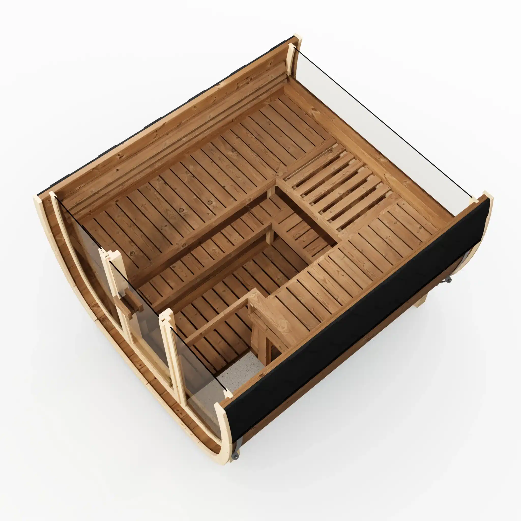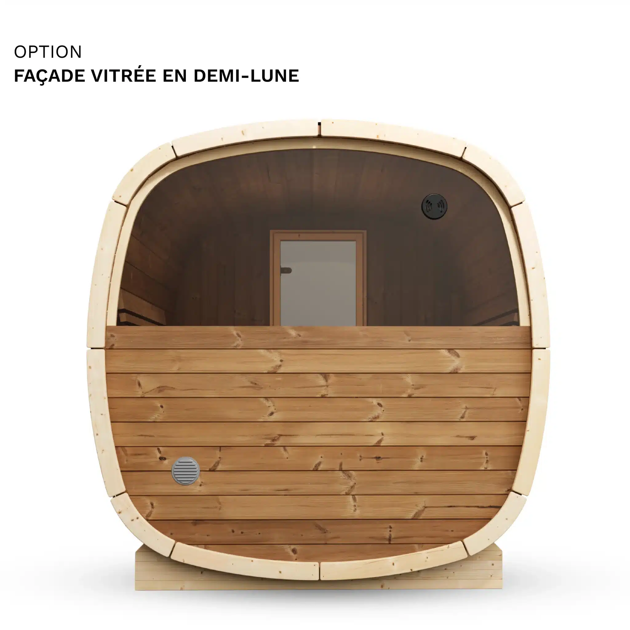 Deux options de chauffage sont disponibles : le poêle électrique Harvia Spirit 9 kW (+990 €) pour un contrôle précis de la température et un démarrage immédiat, ou le poêle à bois Harvia Pro 20 (+1 490 €) pour l’expérience du sauna finlandais traditionnel avec la chaleur du feu de bois. Les deux atteignent 80 à 100°C en 30 à 45 minutes. La puissance de 9 kW est adaptée au volume plus important du 230 par rapport au 160.